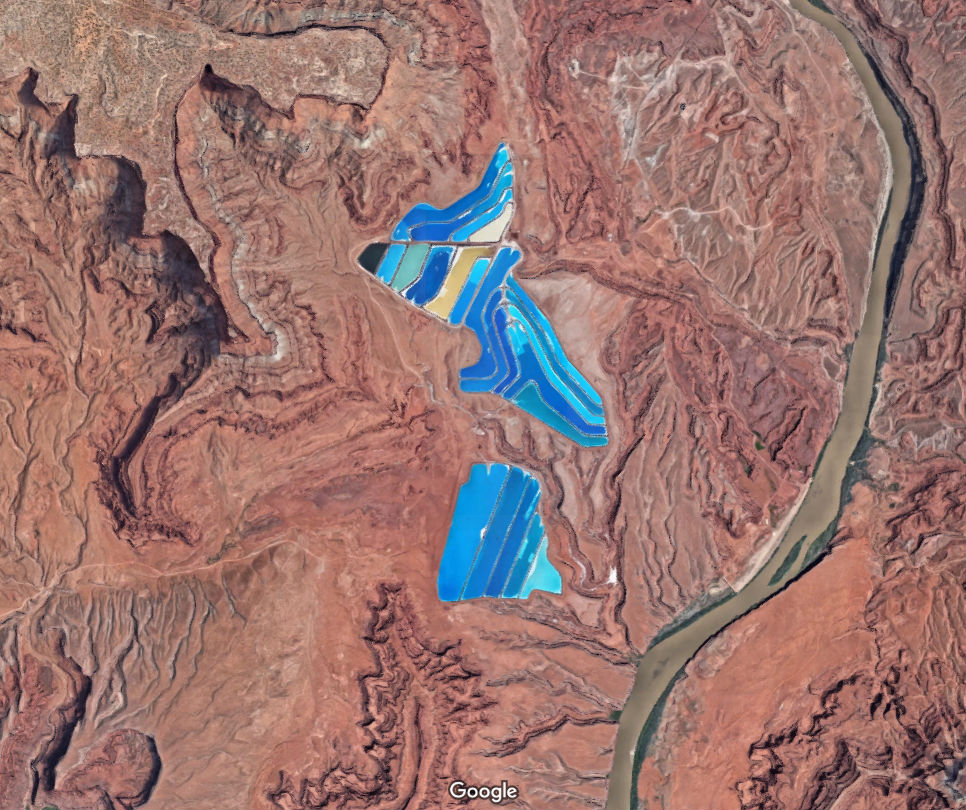 These are actually potassium chloride evaporation ponds at a potash mine near Moab.