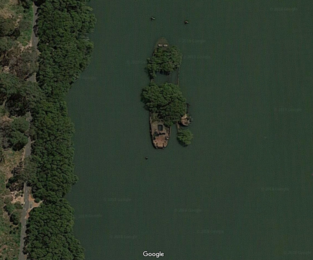 It’s actually a shipwreck in Homebush Bay in Sydney, Australia.