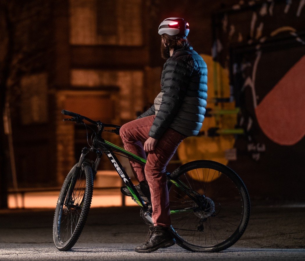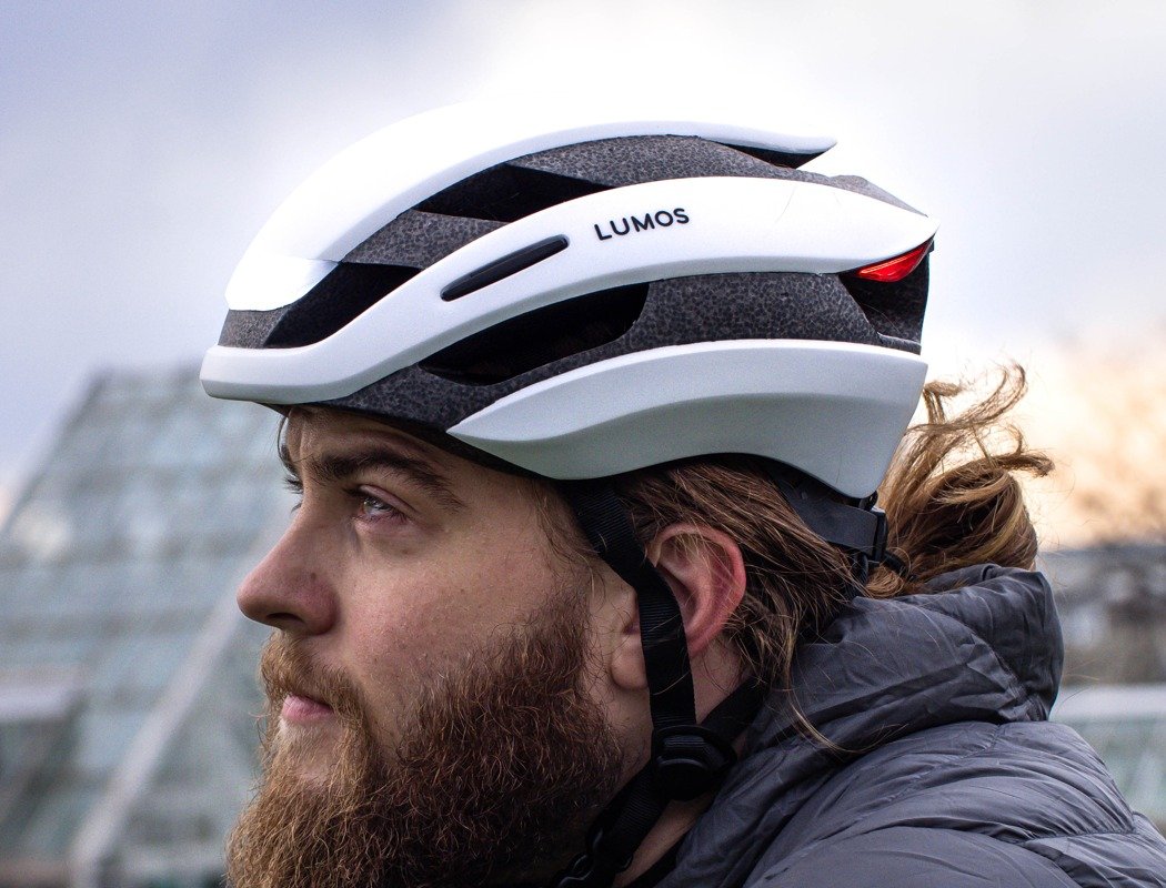 The Lumos Ultra has integrated LED lighting, turn signals, and smart features to keep you safe in one sleek package.