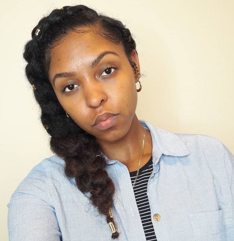 If you love braids and top knots, why not marry the two hairstyles together to get this cute look? Working in some hair jewels will earn you extra style points. Credit: @thechicnatural