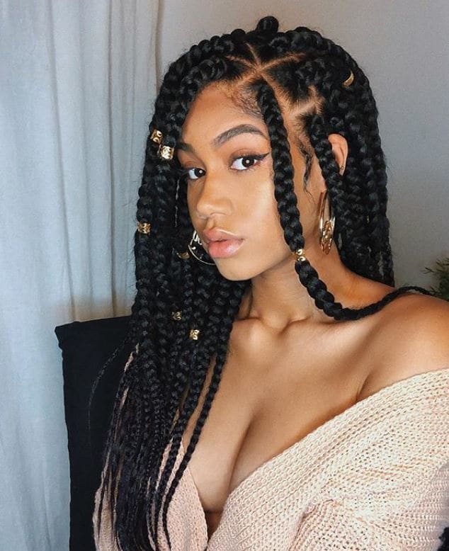 Go bold or go home with these supersized jumbo box braids. From her platinum blonde braids to hair cuffs, there is nothing we don’t love about this babe’s braided style. Credit: @miriannjoh