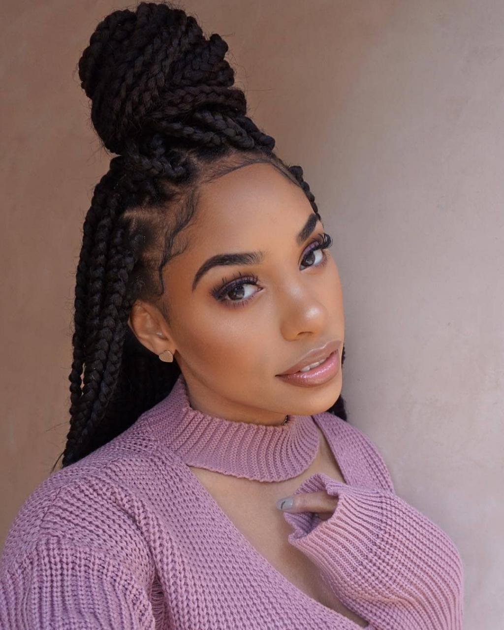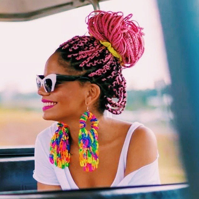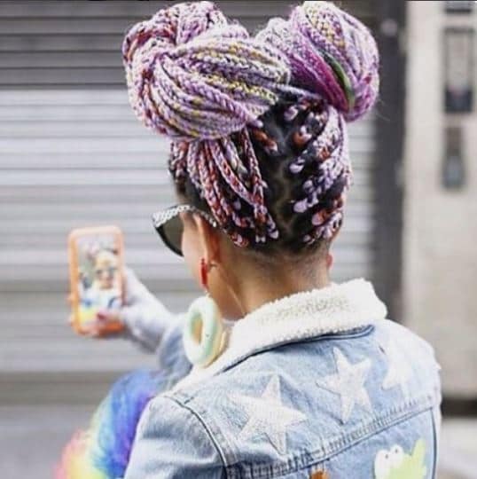 Live your life in bright colours and bold outfits? Then you need to try box braids space buns! Credit: @hairrcastleby_cshami