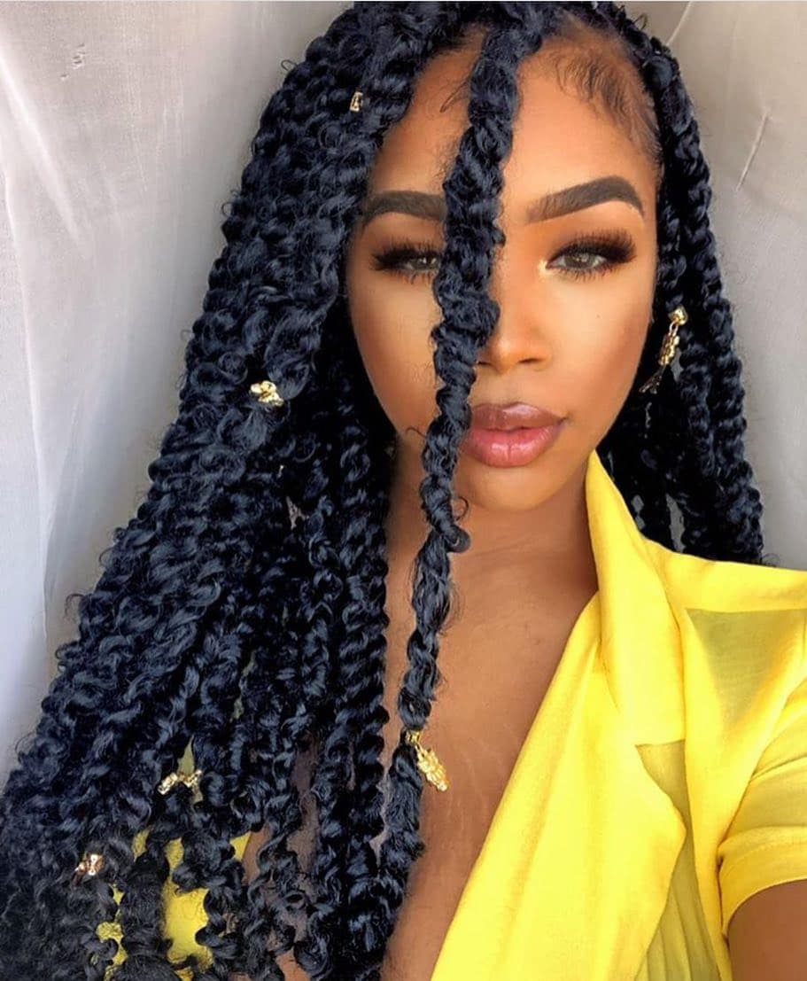 When you marry Senegalese twists and goddess locs together, you get passion twists. They’re the perfect summer style! Credit: @braidsgang