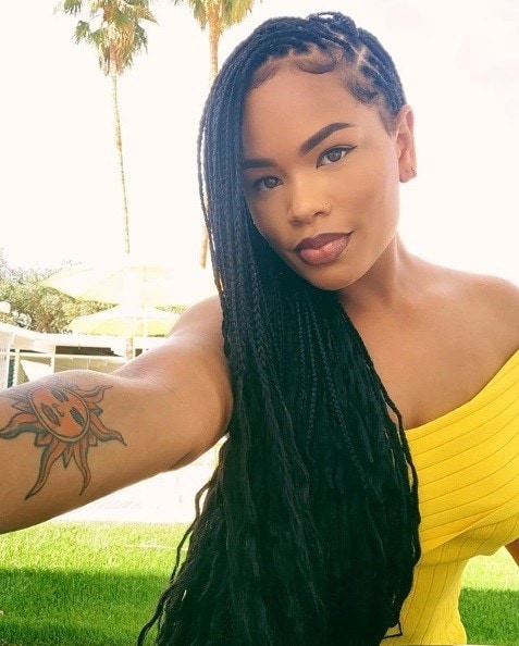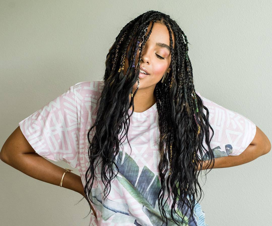 This popular protective box braid hairstyle is a fave among celebs who often wear theirs in various styles. Credit: @martiniquaisement