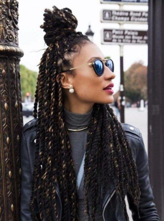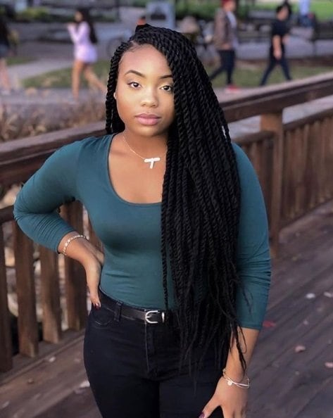 Woven with smooth, sleek-looking hair for a glossy look, Senegalese twists are a black girl’s favourite. Credit: @thakoolo