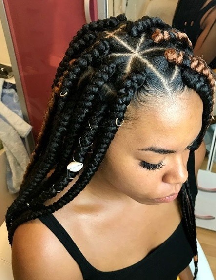 If you’re a fan of Bantu knots, this braided take on them is all you need to inspire you to try something different. This is a cute style you can create when you’ve got box braids, cornrows or twists installed.