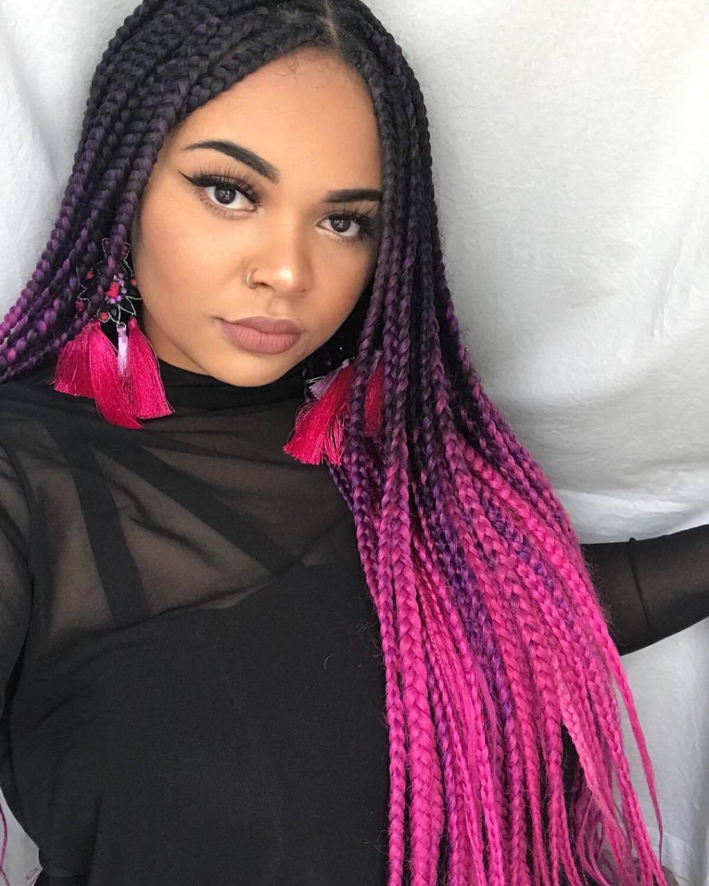 Proving that ombre works brilliantly with box braids, this Instagram babe has given her dark hair a fun pink twist with her colour choice. Credit: @fatou_amina