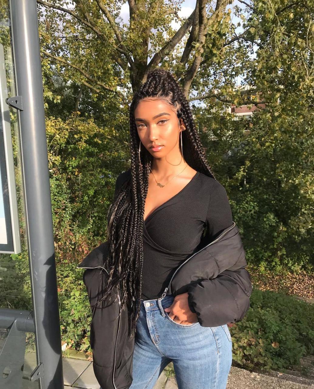 We love the way this model has swept her tiny box braids up off of her face with a half-up hairstyle, flattering her facial features while still making the most of her length. It’s basically the best of both worlds! Credit: @vanessa.padi