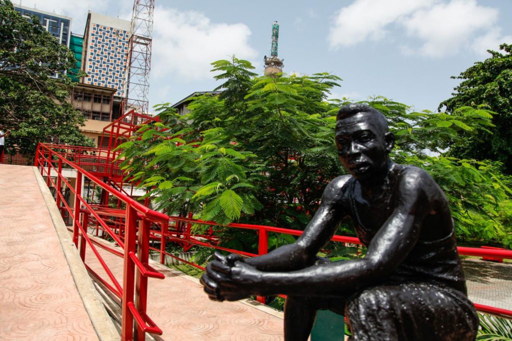 This popular landmark features fountains, flowers, trees, and a life-sized statue of a historical figure—Madam Efunroye Tinubu.