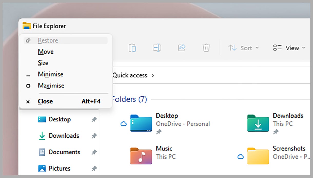 To control the behavior and position of open application windows, Win+Up maximizes them and Win+Down minimizes them. You can also tap Win+Left or Win+Right to snap the current window to the left or the right of the screen. Alt+Space gives you more options, including the ability to move windows (using the arrow keys).