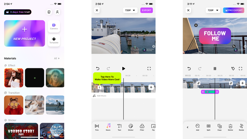 Just like its desktop counterpart PowerDirector 365, the mobile version of PowerDirector is loaded with editing tools, templates, transitions, and effects. You can create projects in vertical or horizontal aspects, and you can add titles and soundtracks, too. Subscribers have access to stock footage from Shutterstock, Getty iStock, and Pixabay. You get nearly all the same tools that come on the desktop program, including overlays with transparency, chroma keying, animated text titles, and even effect keyframing. Particularly useful for mobile use is the Fit & Fill tool, which makes reformatting horizontal content to vertical—and vice versa—a snap. The app includes templates for business social posts, vlogs, and Instagram videos. You can use the app for free, though to get extra goodies and remove the watermark, you need to pay for a (frequently discounted) subscription. You can also score premium features by creating video challenges.